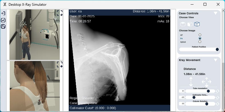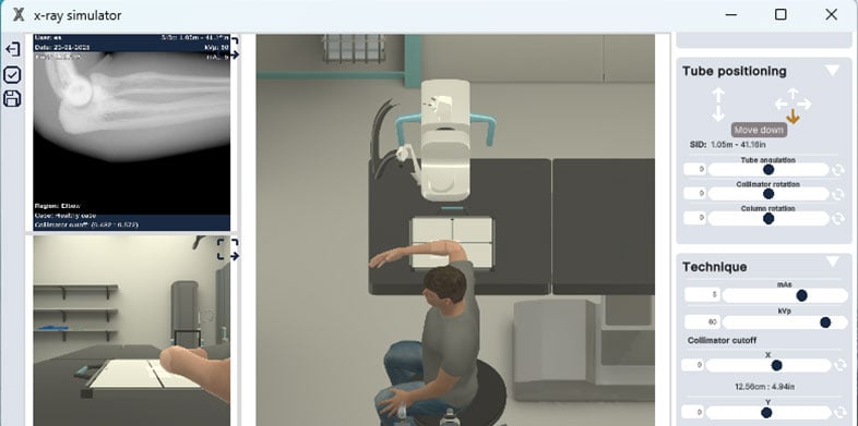 A virtual lab complements real energized labs, giving students unlimited X-ray exposure and positioning practice without the radiation risk.