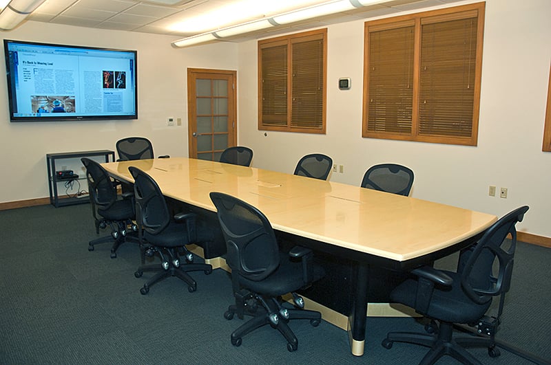 This mid-sized conference room serves as the hub for publications and marketing at ASRT. It includes seating for 12, laptop dataports and a large display screen that can be used for real-time publication planning, analysis, editing and scheduling.