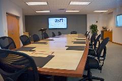This tastefully appointed room is used for meetings of the ASRT Board of Directors and other important stakeholders. Equipped for video conferencing, including laptop dataports, this space includes a large conference table that can seat up to 20 people. It also contains a small buffet serving area and boasts a curved bank of windows that overlook Route 66, which is adjacent to ASRT’s office.